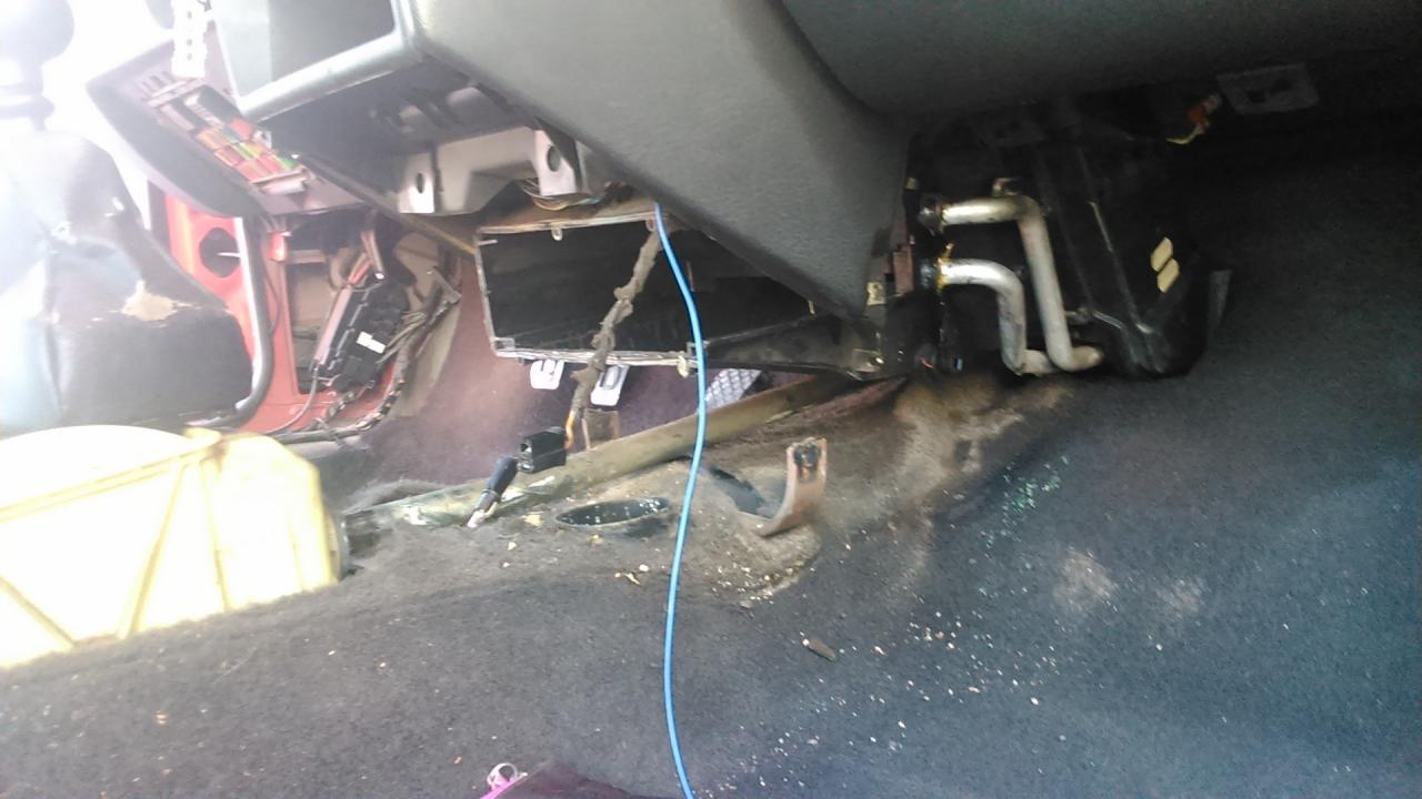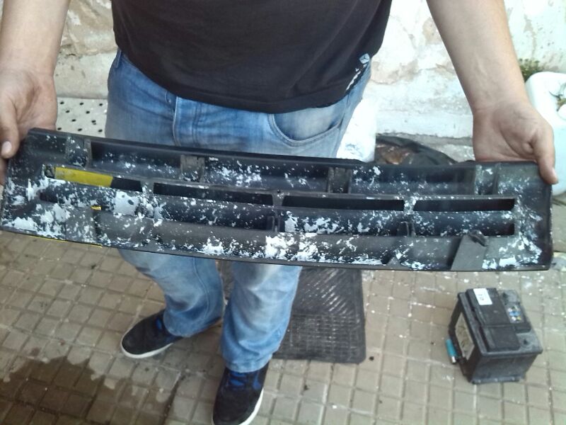 Ademas hoy le hemos sacado hoy el radiador del A/A y el de la calefaccion, y ya hemos encontrado por que no salia aire jajaja 1 kg de mierda. Pintado el maletero para eliminar los principios de oxido y petroleado todo hasta el carter.